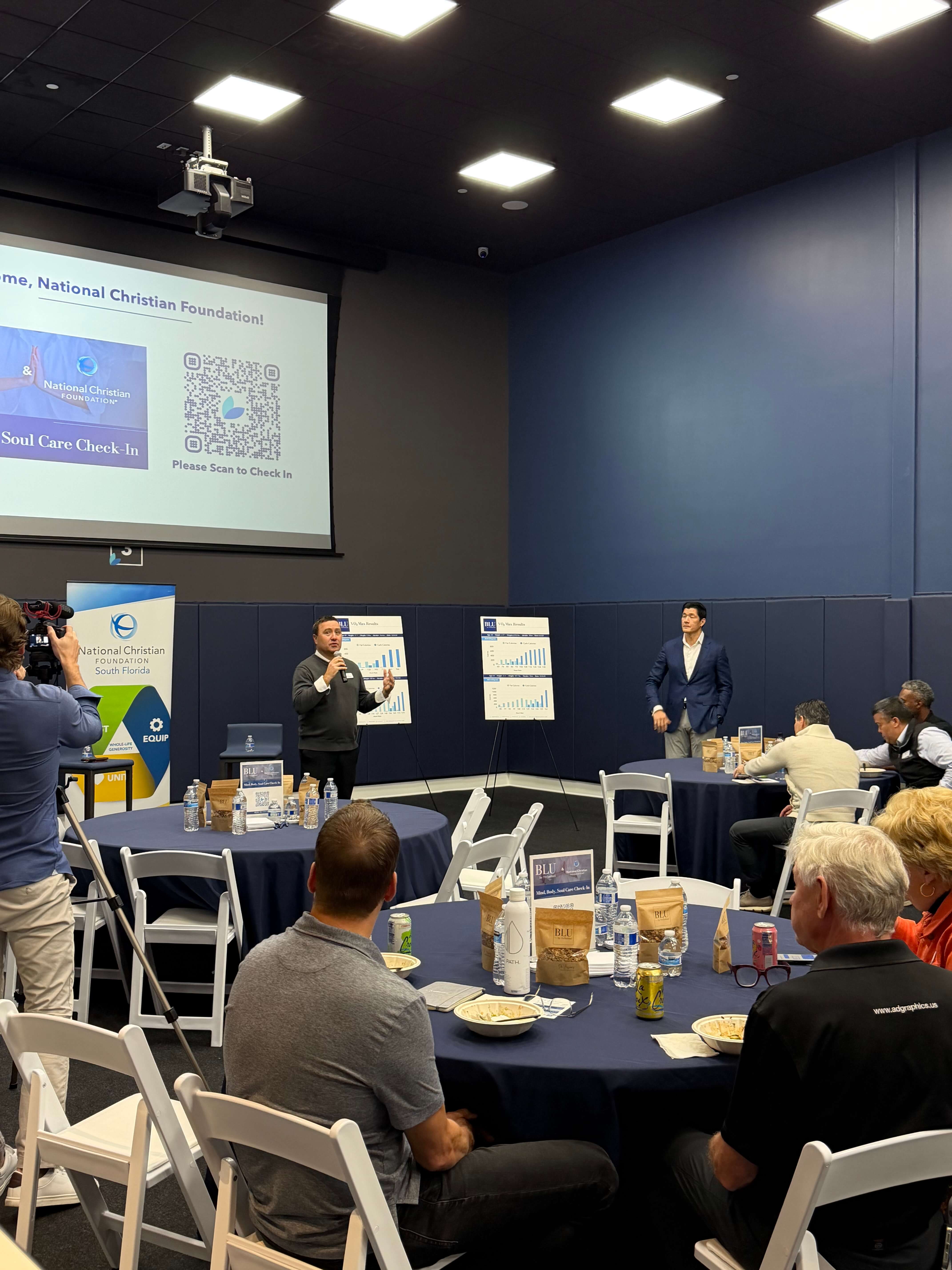 The event began with check-in and connection, followed by a warm welcome from Brad Schmidt, Director of Faith + Work, National Christian Foundation, who set the tone for an afternoon rooted in purpose and reflection. From there, attendees engaged in an immersive Mind & Body session led by BLU Co-Founders Dr. Gordon Chen, CEO and Cardiologist, and Dr. Jessica Chen, Chief Health & Wellness Officer at BLU. Together, they explored the powerful connection between physical health, mental well-being, and long-term vitality, sharing practical insights grounded in lifestyle medicine, preventive care, and intentional daily habits.