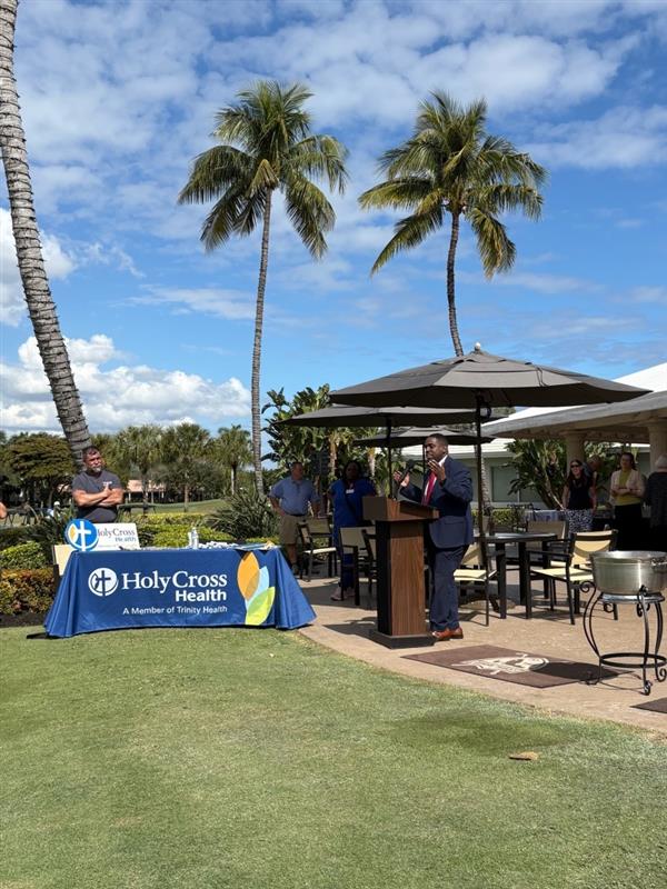 During the event, Pierre Monice, President and CEO of Holy Cross Health, introduced Gordon L. Chen, MD, Chief Executive Officer of BLU and Board-certified Cardiologist and Internal Medicine physician. Dr. Chen addressed attendees with a brief message of gratitude and purpose, sharing why BLU was honored to be a sponsor of the tournament and support Holy Cross Health’s mission.